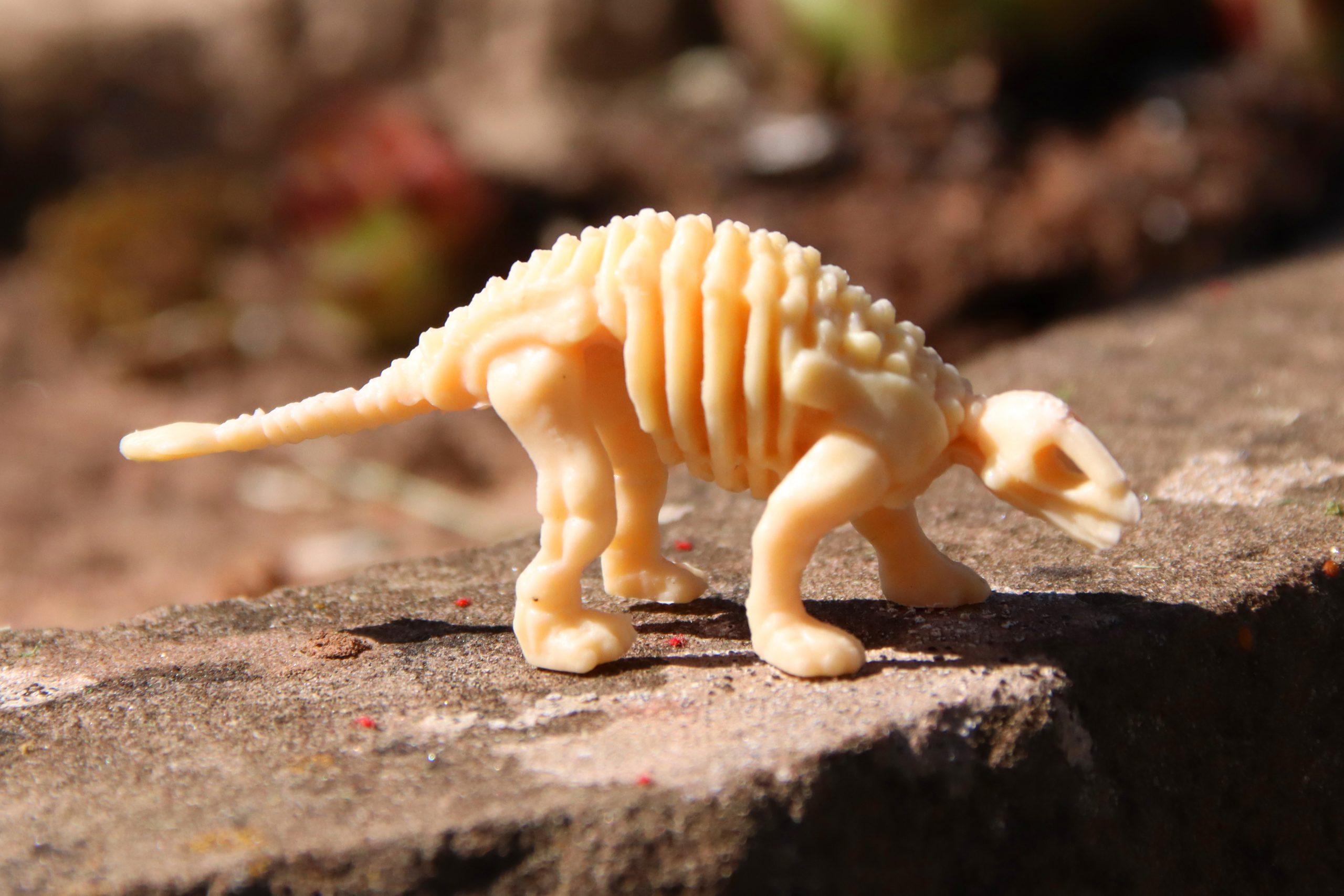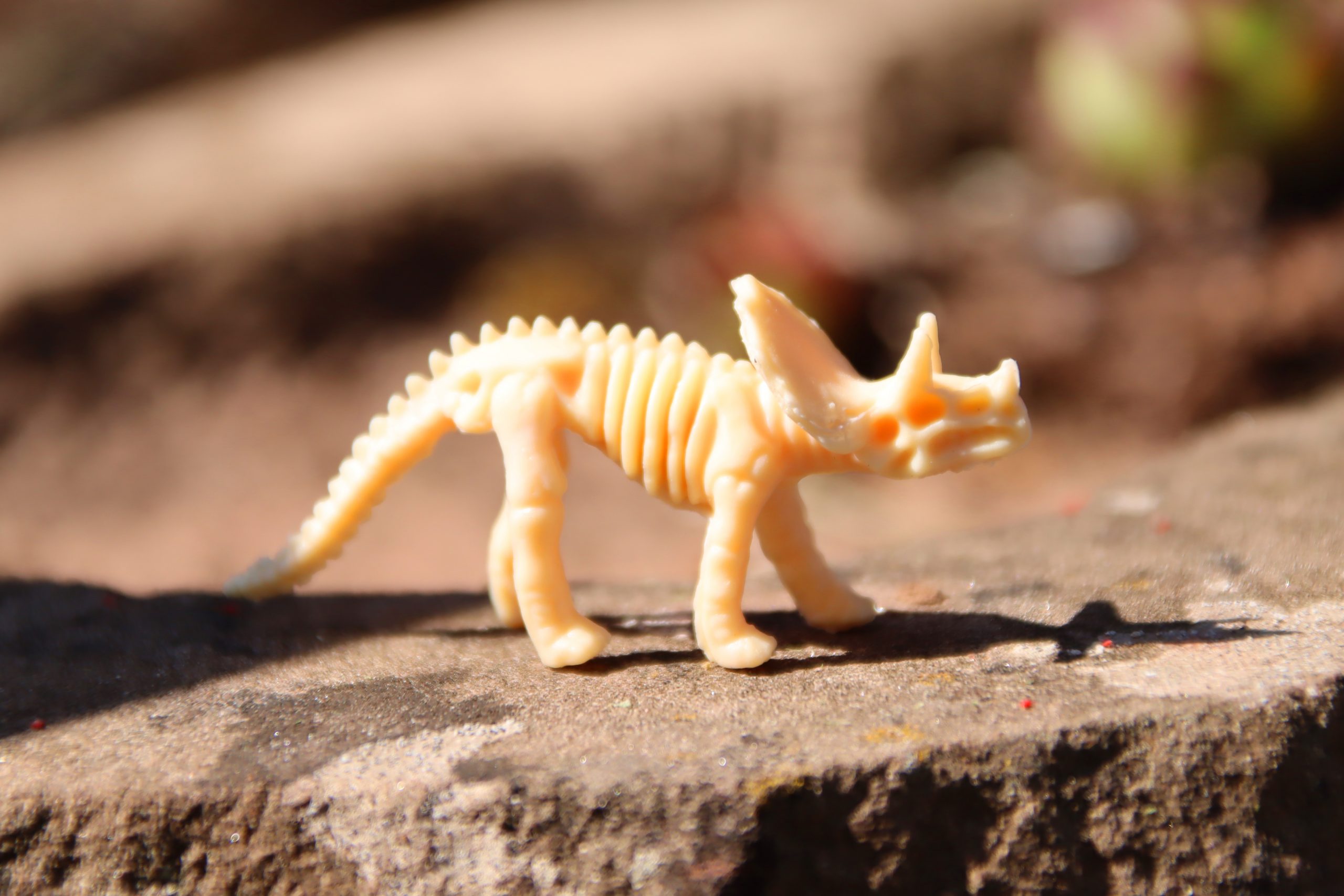 2 kleine Dino-Skeletten aus Plastik. Wenn sie in Verbindung mit einem Eimer bestellt werden, werden sie im Eimer versteckt. Art zufällig