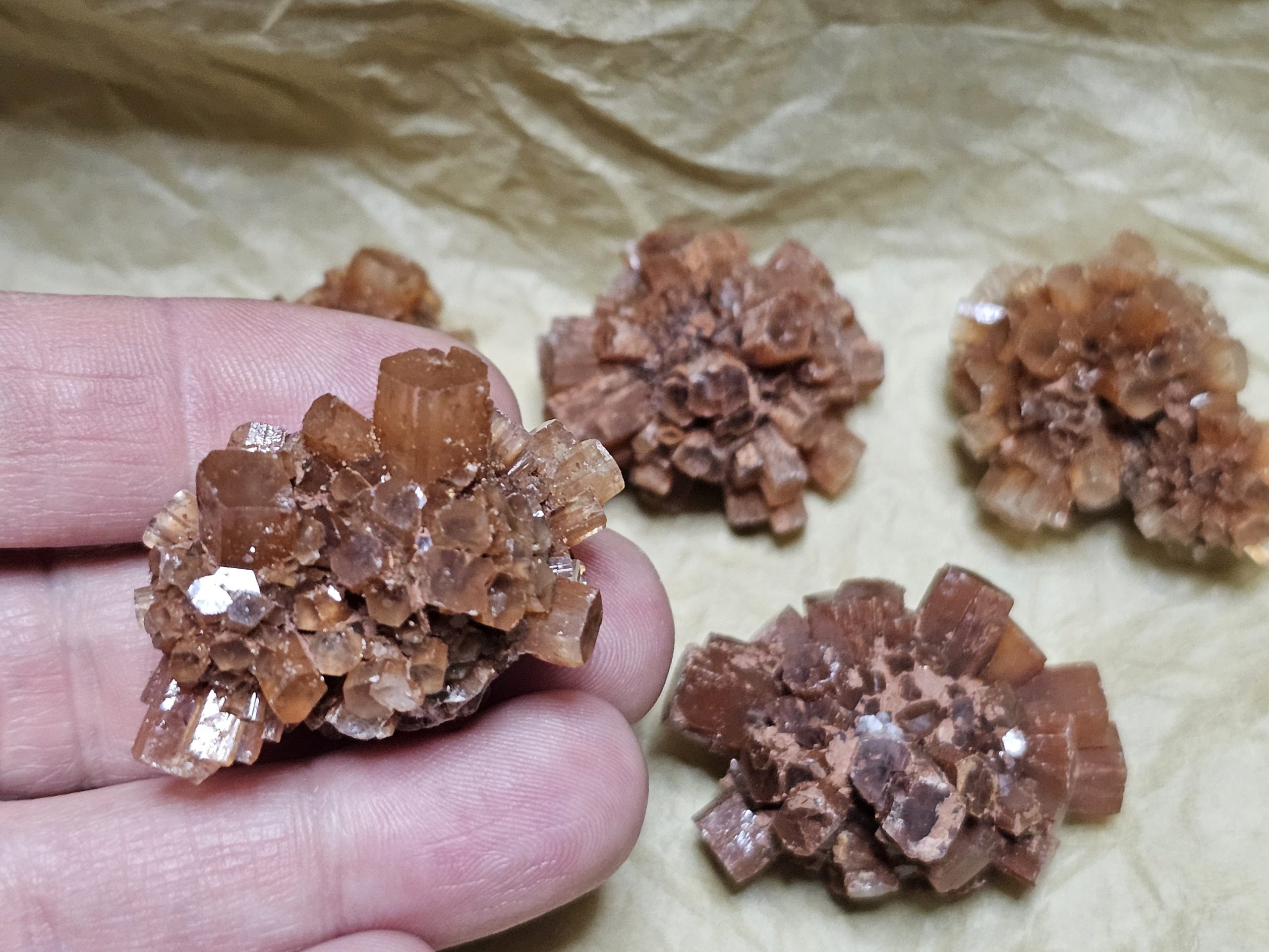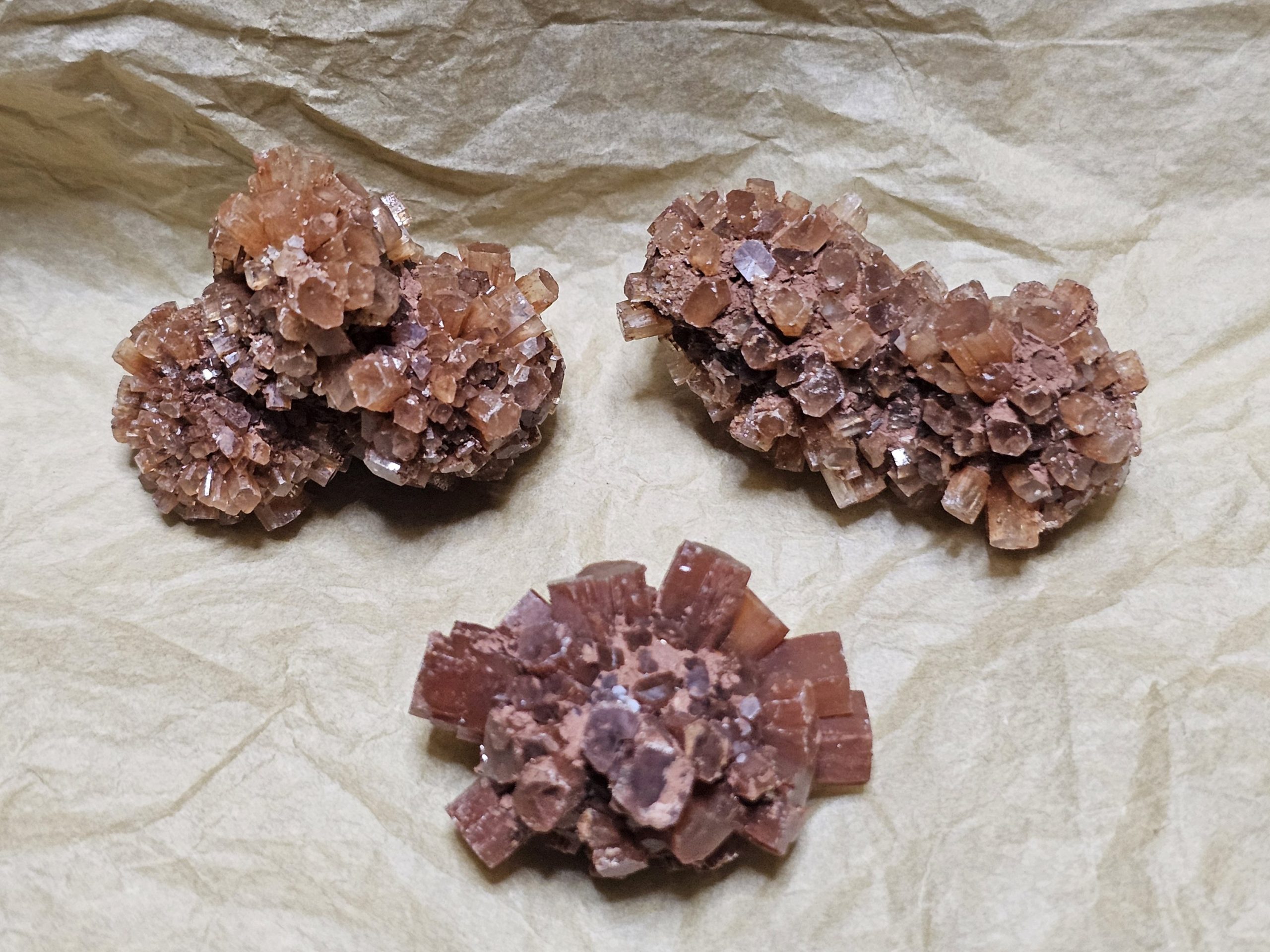 Diese wunderschöne, natürlich gewachsene Kristallstufe aus Aragonit ist eine spezielle, kugelförmige Variante des Minerals, mit vielen nach außen ragenden Kristallen, die an einen Satelliten oder einen Igel erinnern. Seine rot-braune Farbe bekommt es durch durch Eisenoxid. Er gilt als Erdungsstein, der Stress lindert, die Nerven beruhigt, Stabilität gibt und dabei hilft, innere Ruhe und Gleichgewicht zu finden.