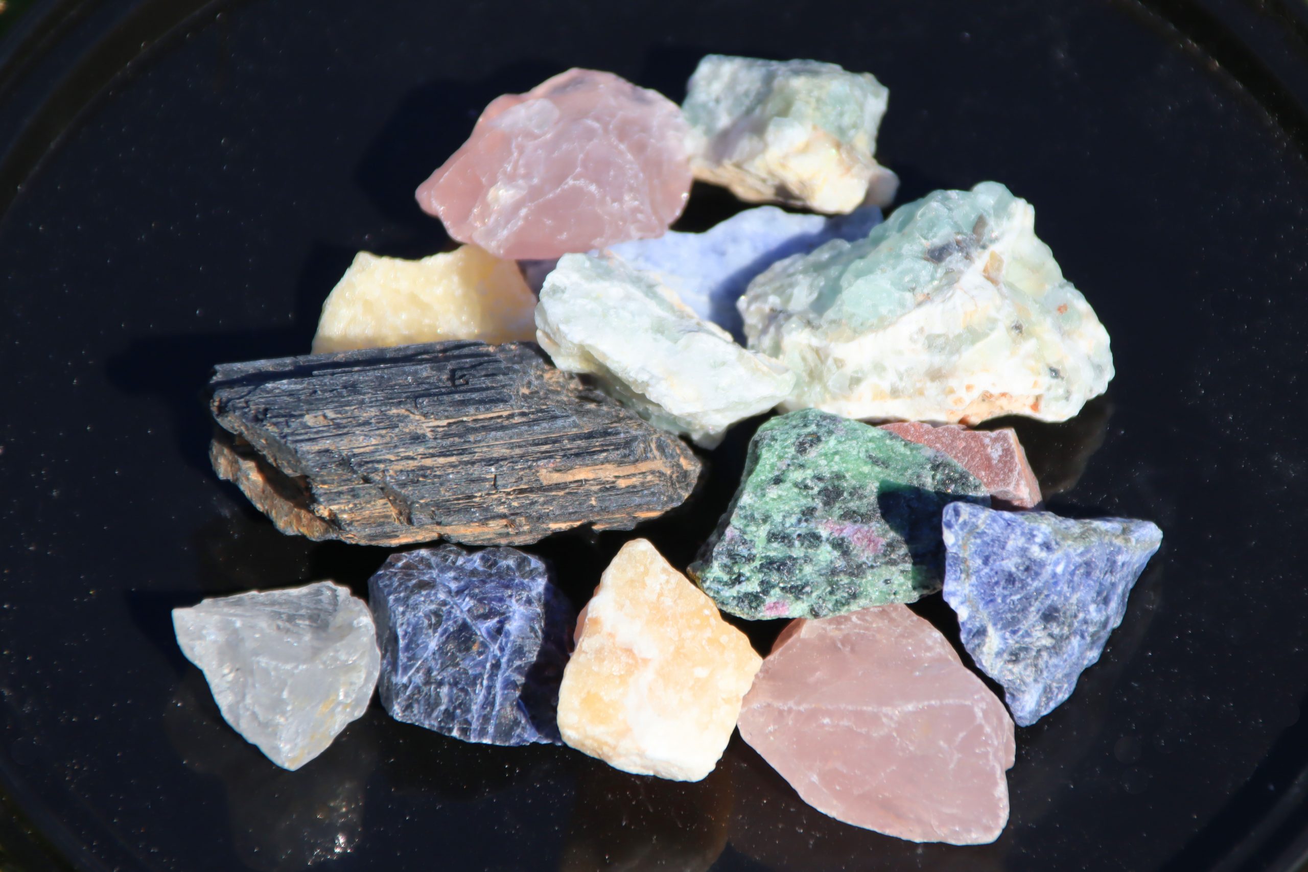Eine Portion Rohsteine. Bunte Mischung aus verschiedenen Edelsteinsorten.