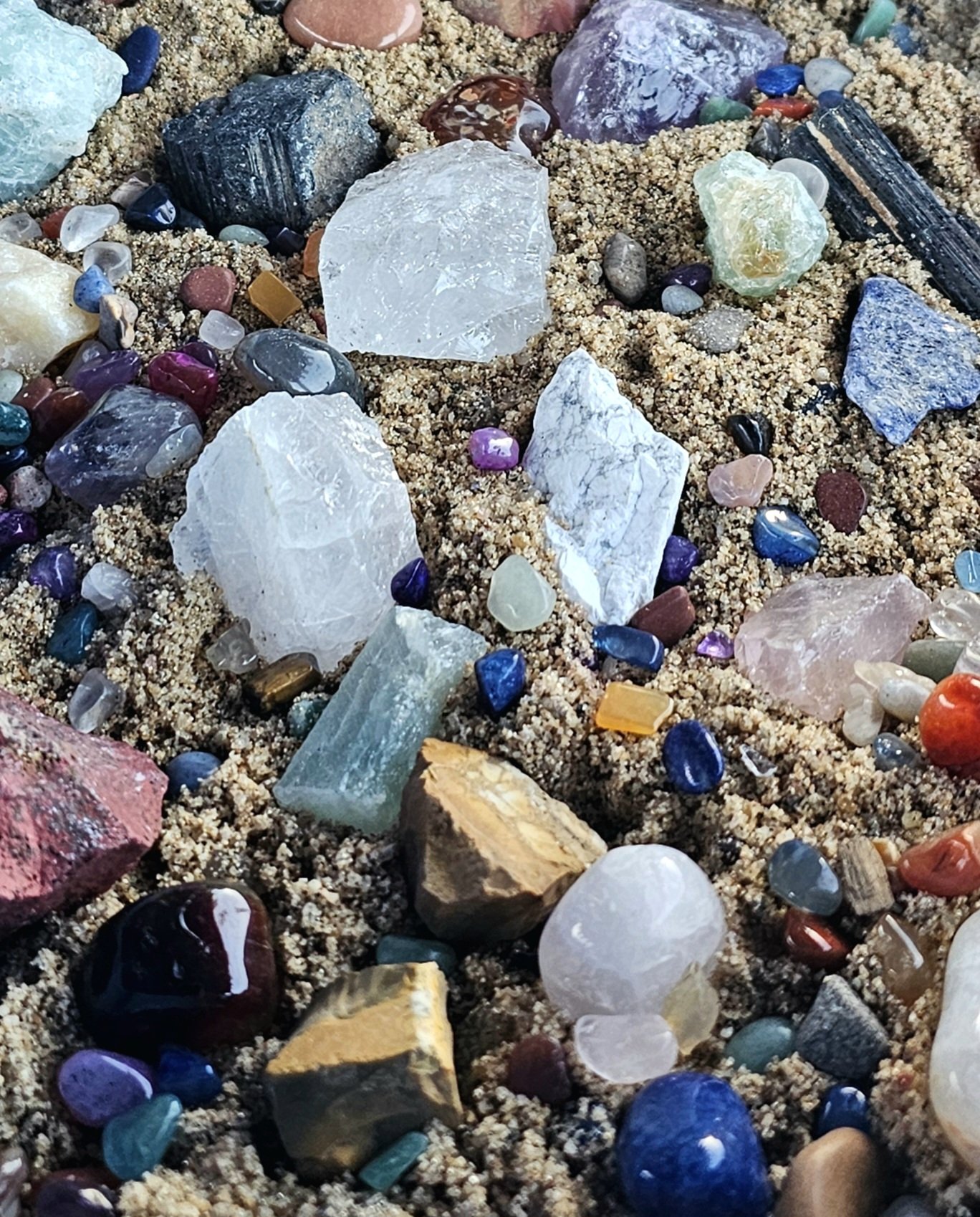 - einer kleinen Portion Trommelsteine (Edelsteine in verschiedenen Sorten, Größen und Farben)