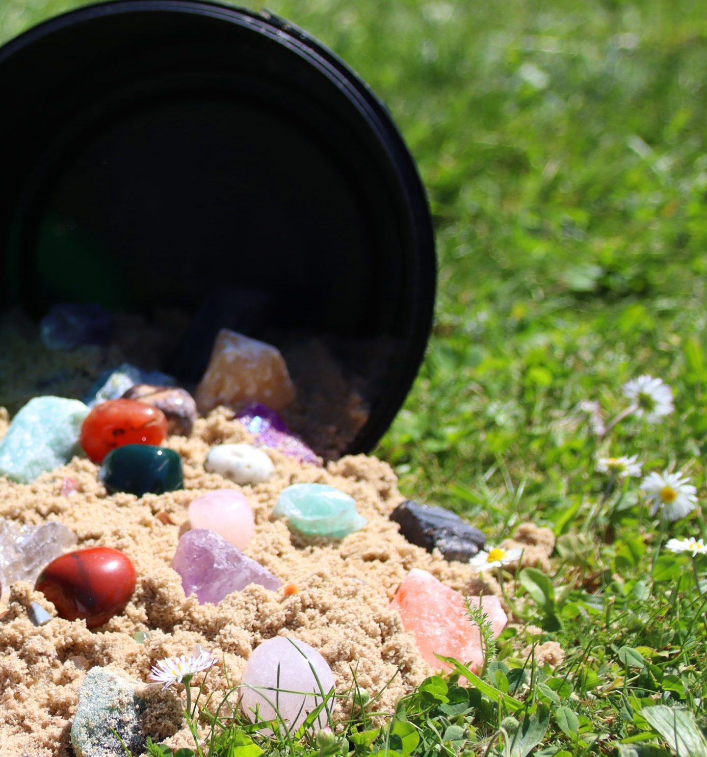 - einer kleinen Auswahl an Natursteinen (es wird eine individuelle Mischung für deinen Eimer zusammengepackt. In jedem Eimer sind ca. 6 verschiedene Sorten Natursteine. Diese werden zufällig aus einem Bestand von ca. 20 Steinsorten für deinen Eimer ausgewählt)