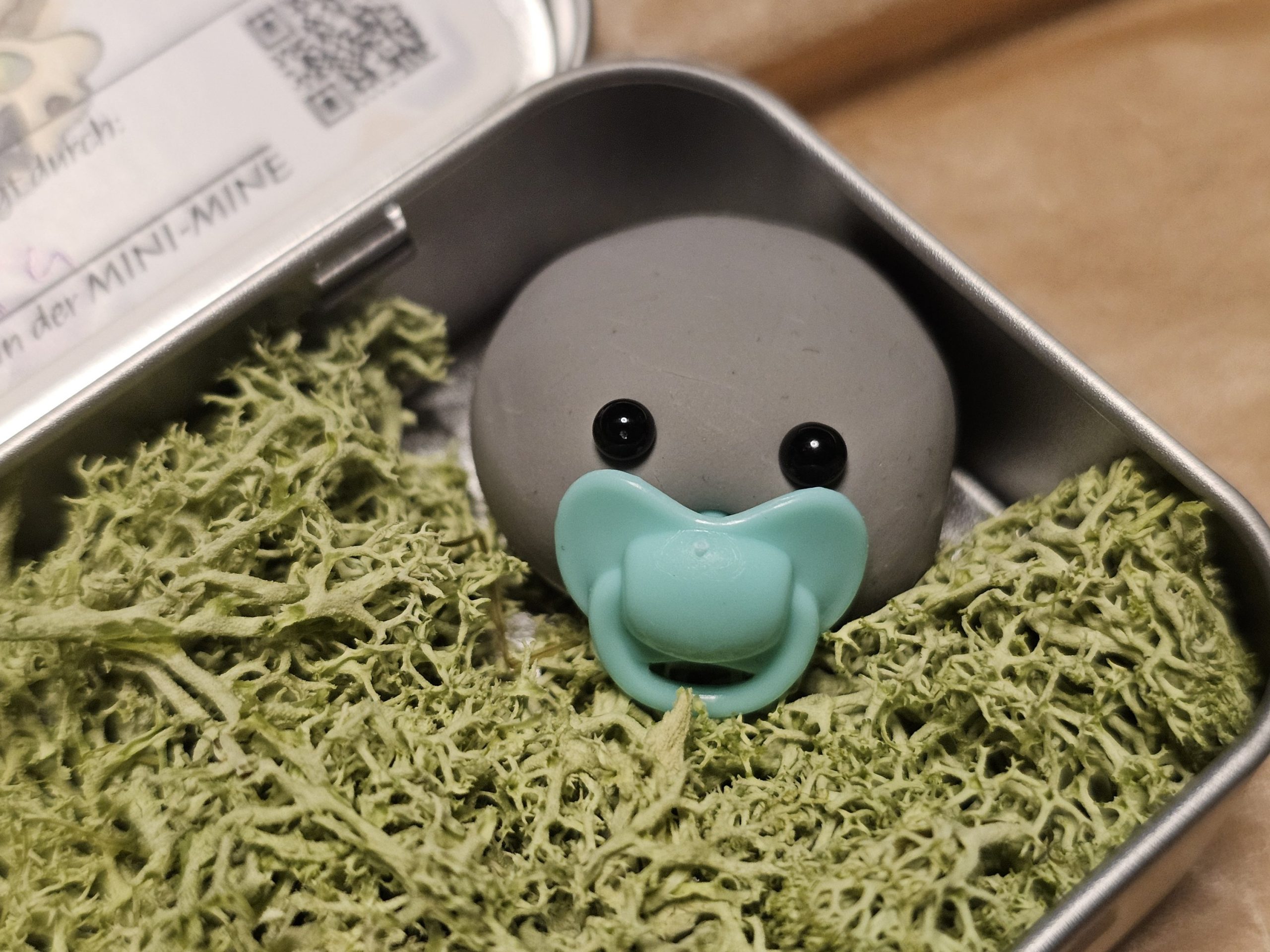 Jeder süße Baby Kiesel ist ein Unikat und bringt sein eigenes kleines Zuhause mit: eine gemütliche Metalldose, etwas Moos als kuscheliges Bett, kleine Edelsteine als Snacks, einen Napf zum Essen, alles was ein kleiner Stein braucht um mal ein großer Felsen zu werden. Je nach Variante kommt dein Kieselchen mit einem Fläschchen oder einem Schnuller.