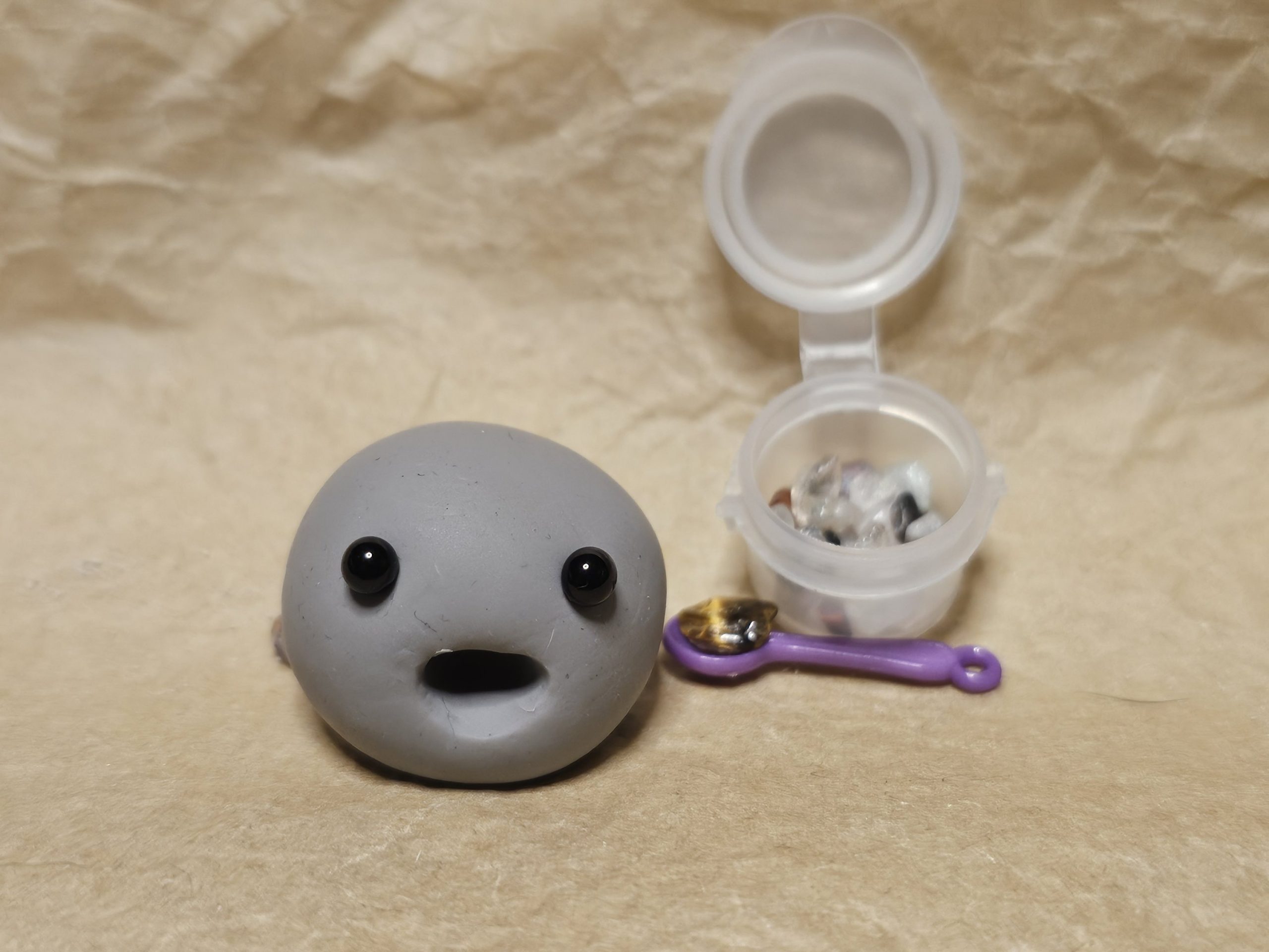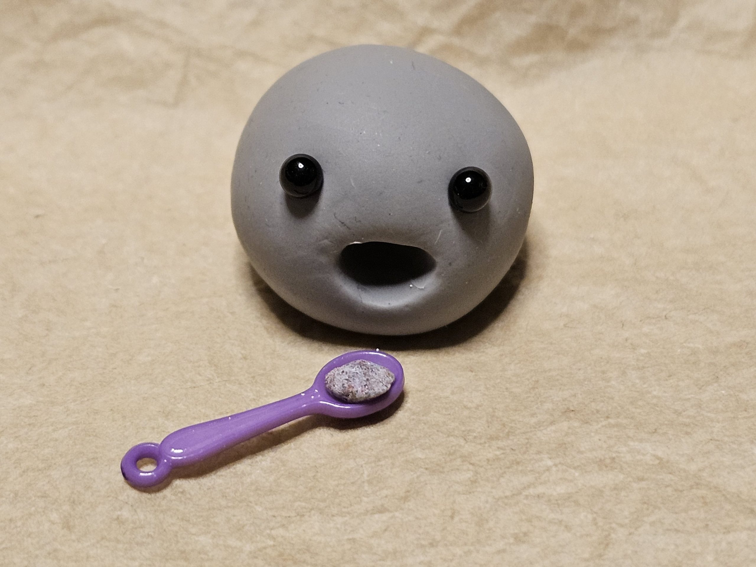 Mit Hilfe der mitgelieferten Modellierwerkzeuge den Mund formen (eine kleine Öffnung, aber größer als der Löffel).
