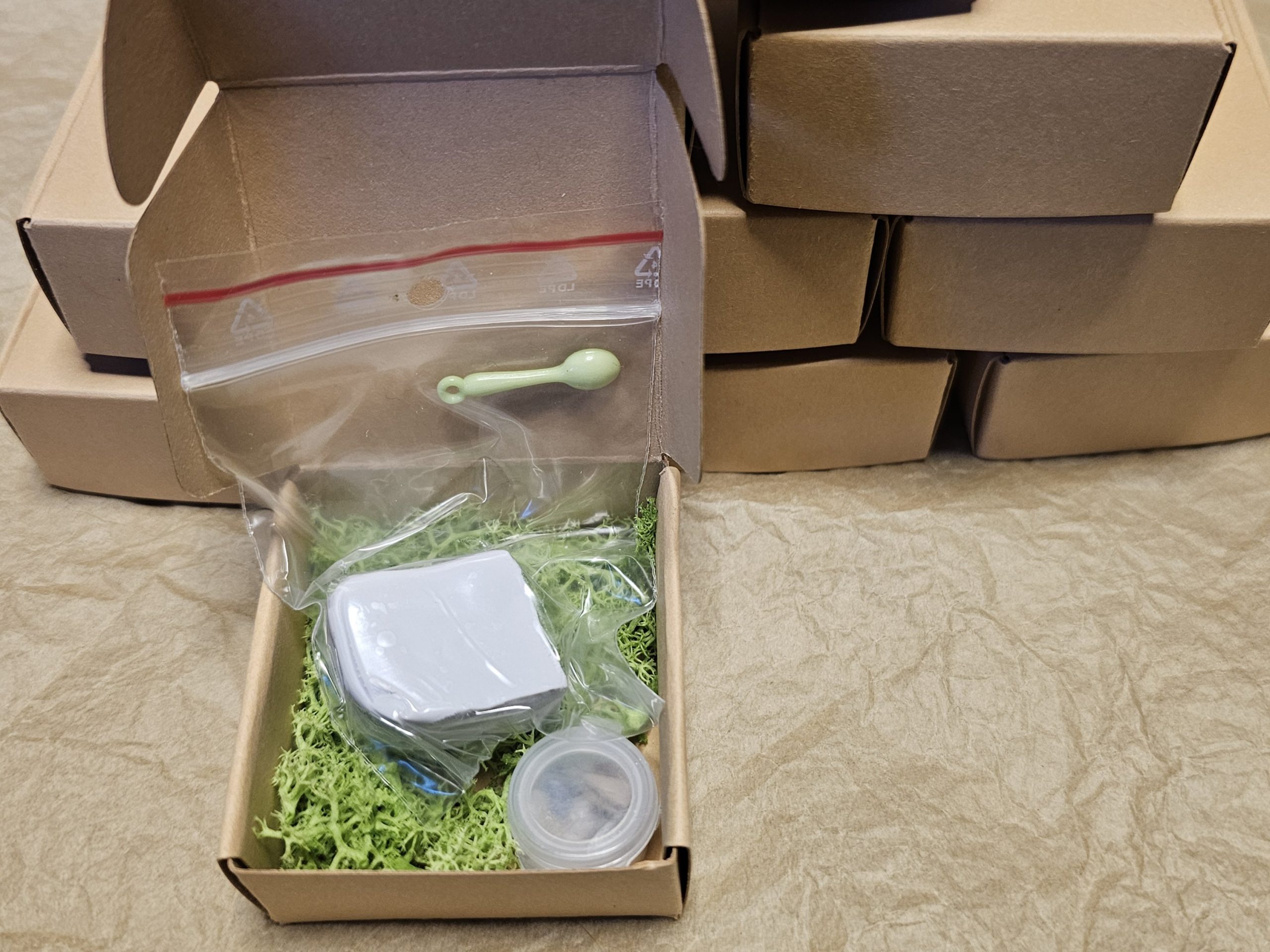 -10 kleine Schachteln mit etwas Moos: ein sicheres kleines Zuhause für die Steinchen