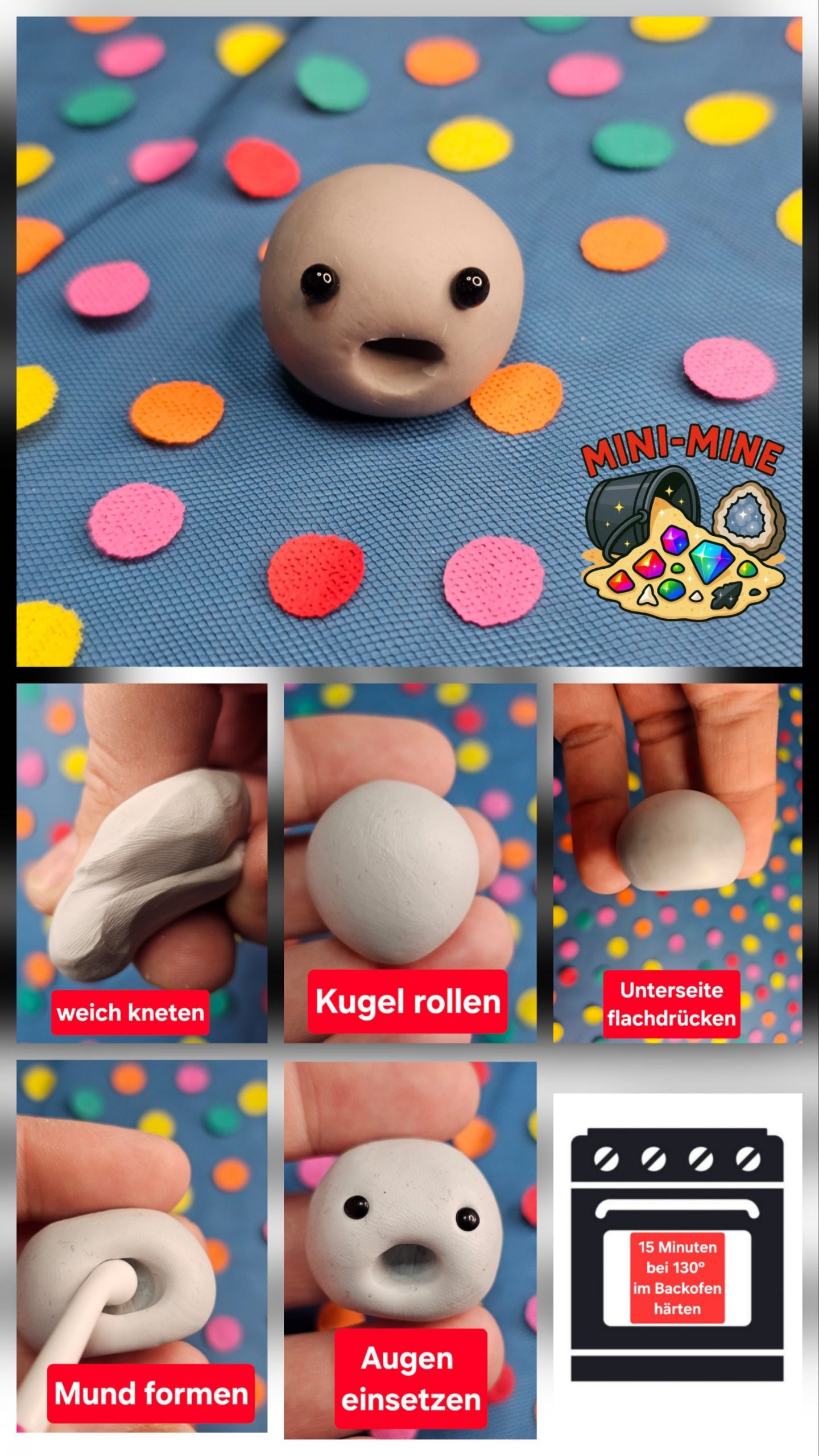 -Material für 10 Haussteine (Polymer Knete, Glasaugen)