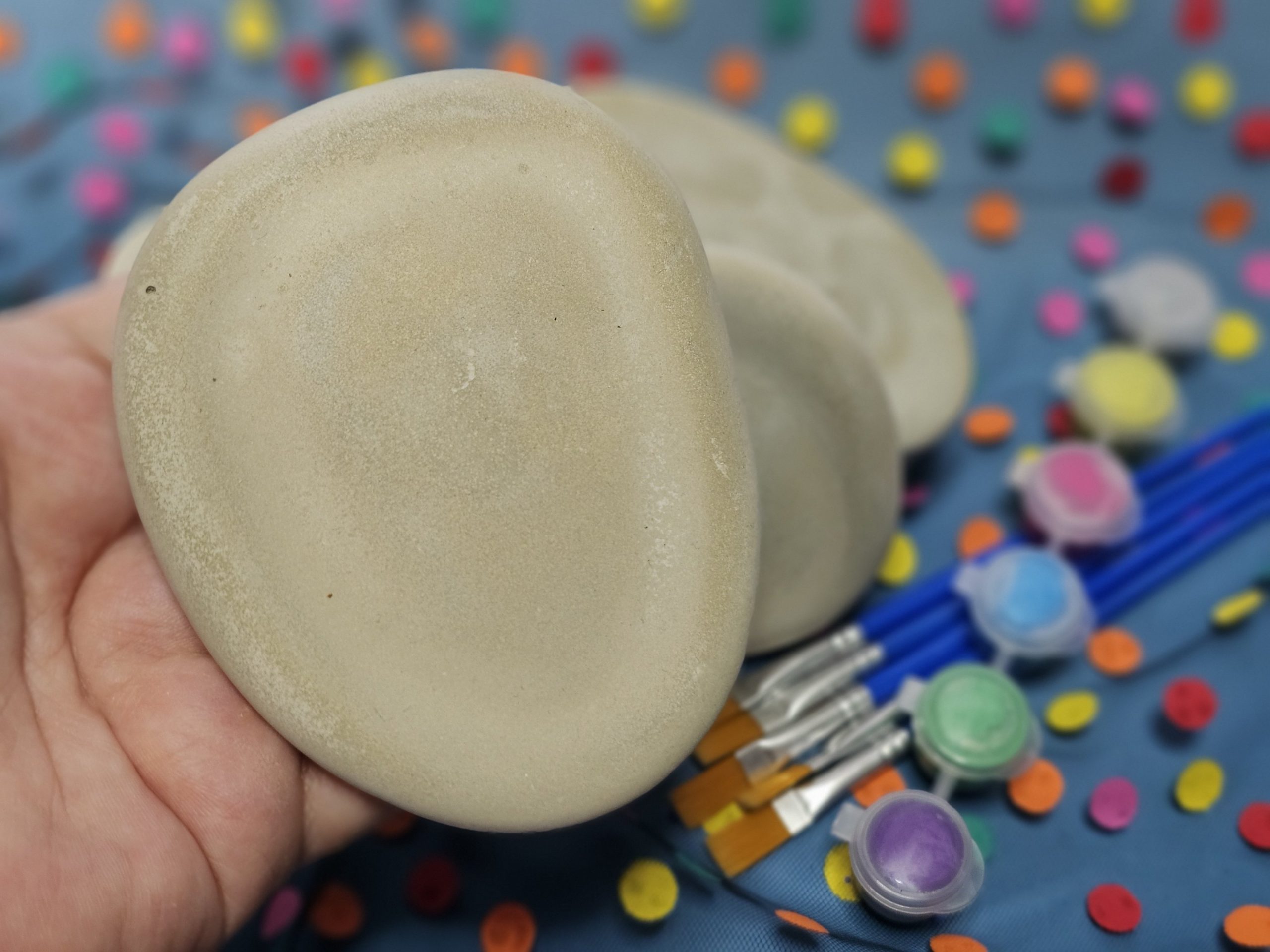 Dieses Set enthält fünf XXL Steine aus Gießbeton, die sich ideal zum Bemalen eignen. Durch ihre Größe bieten sie viel Fläche für Farben, Muster und Ideen.