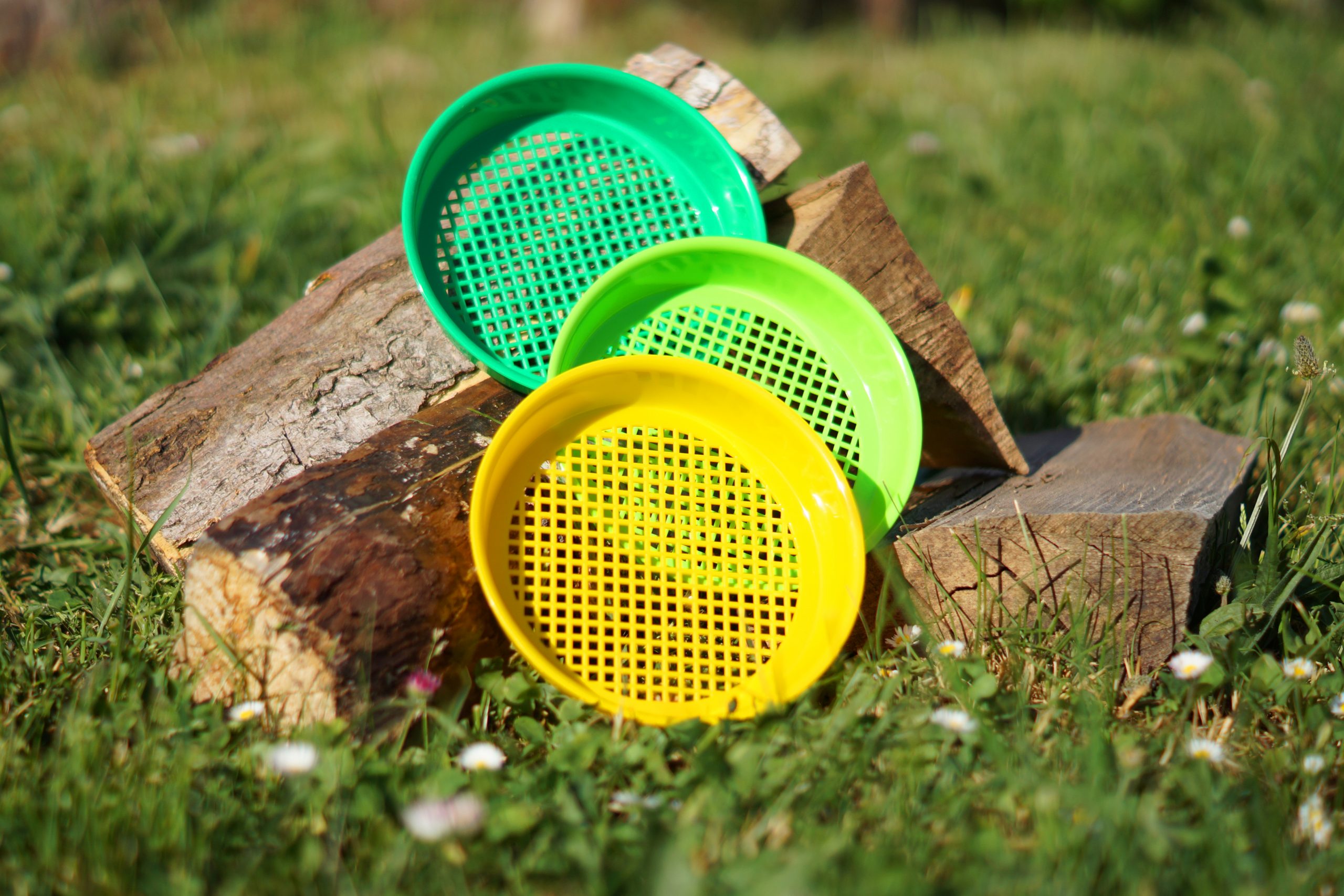 Kein Sieb Zuhause? Mehrere Kinder wollen sich einen Eimer teilen? Bestelle ein extra Sieb in zufälliger Farbe.